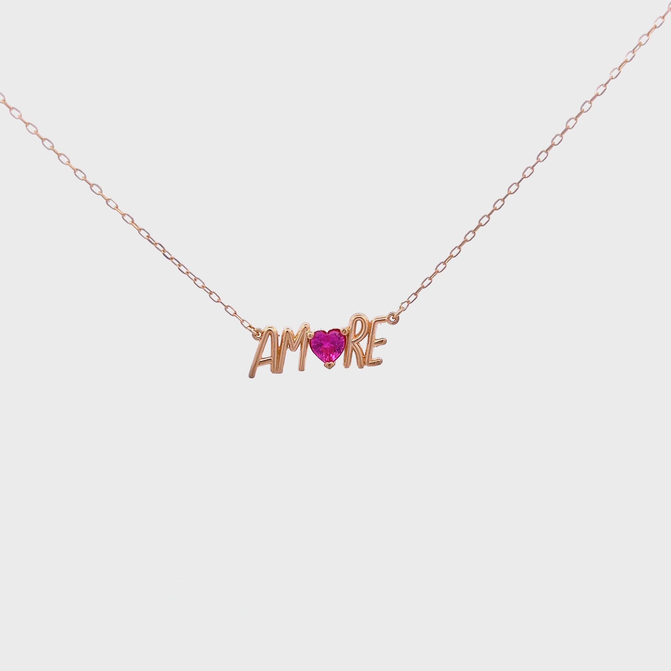 Girocollo con scritta AMORE e dettaglio rosa tagliato a forma di cuore.